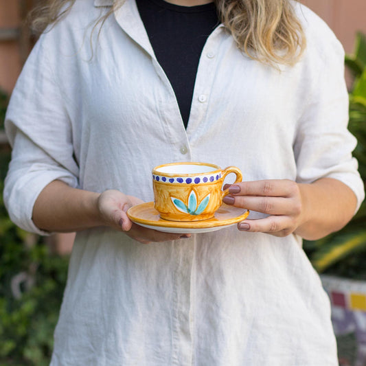Hand-Decorated Vietri Ceramic Cup with Saucer