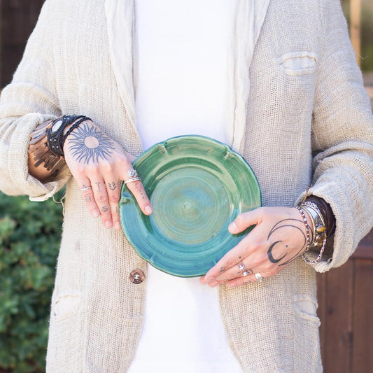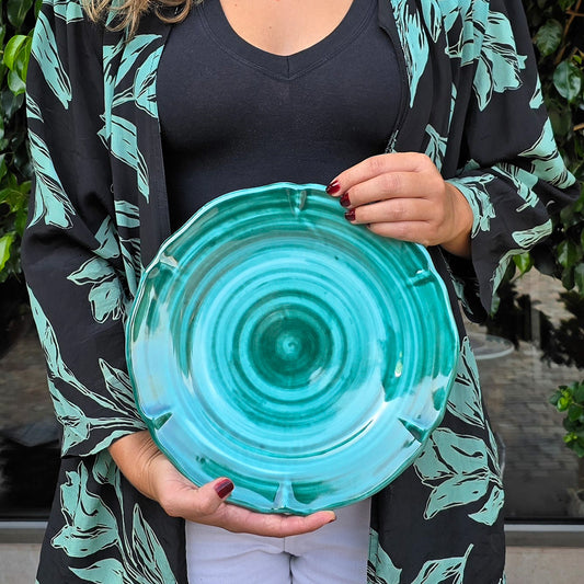 Hand-Decorated Scalloped Flat Plate in Vietri Ceramic - Forest Green