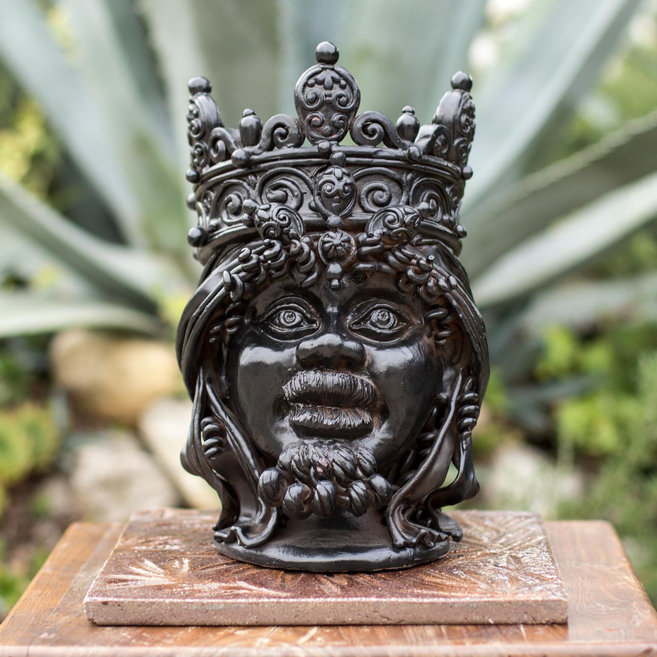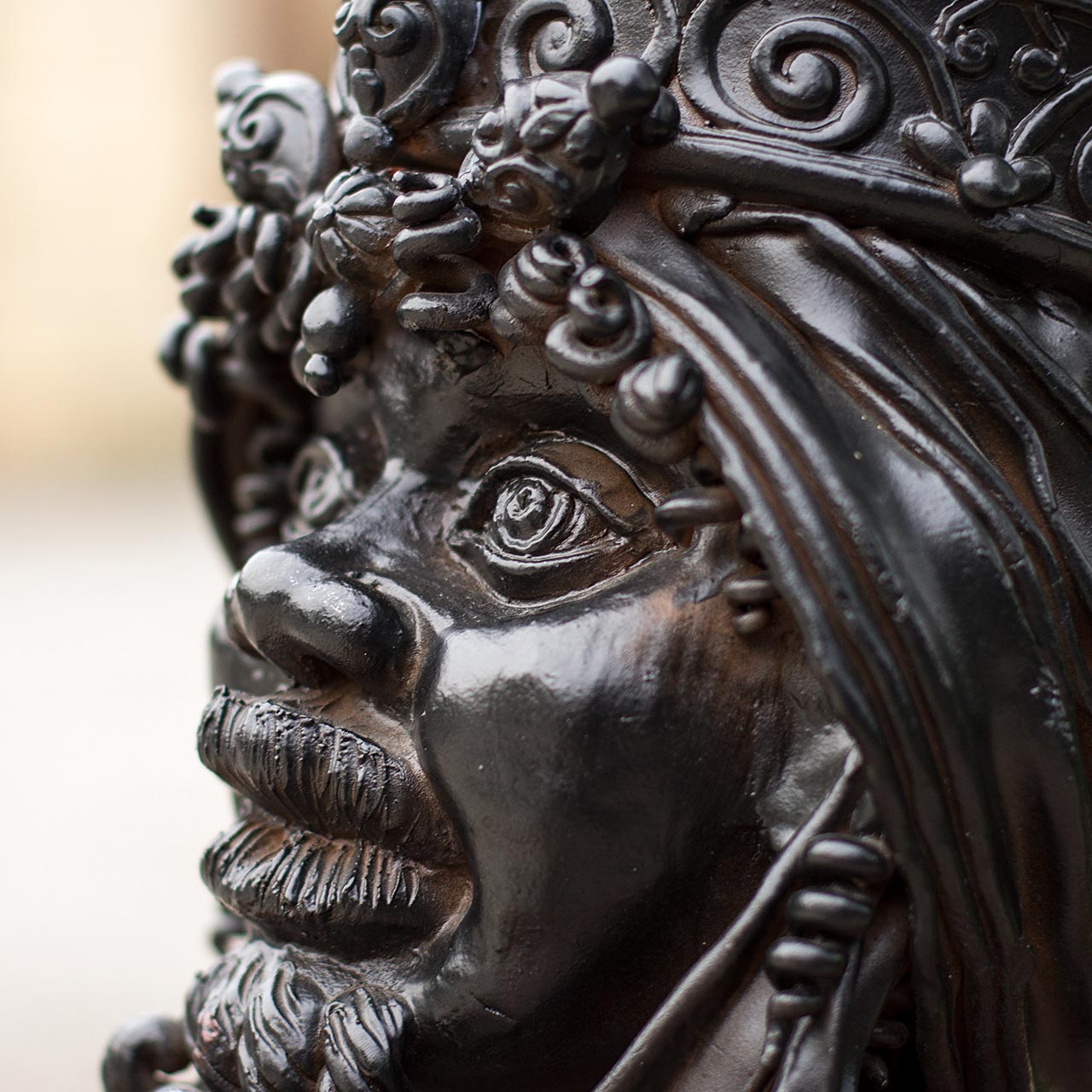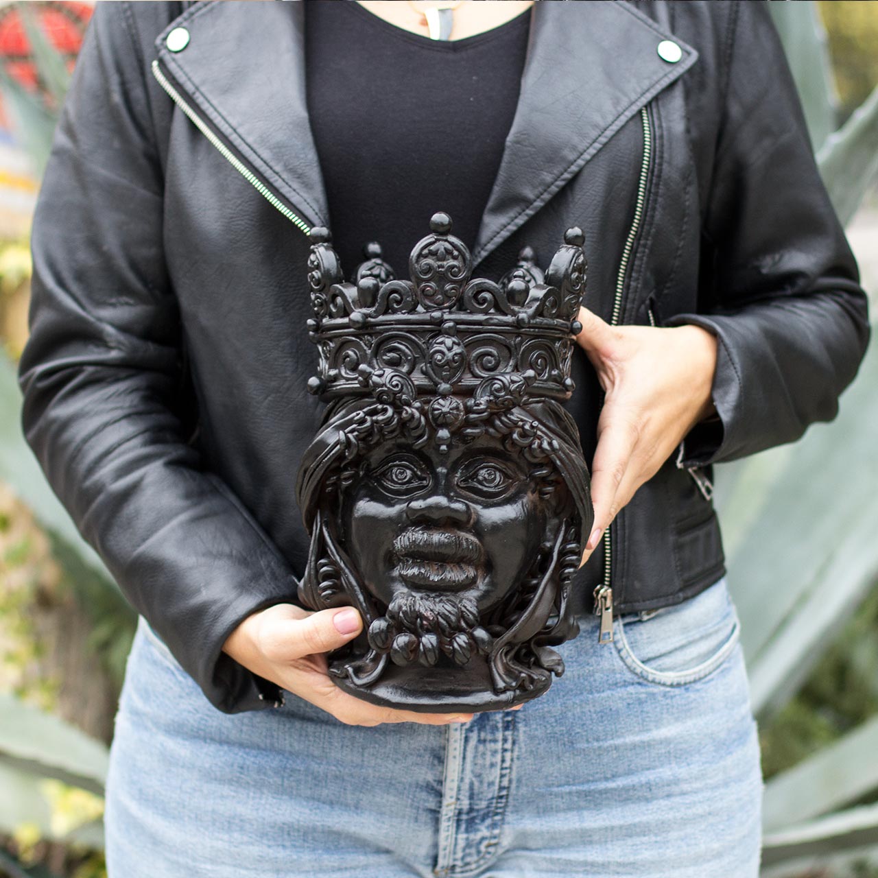 Sicilian Moor's Head in Hand-Sculpted and Glazed Ceramic - King - H 30 cm